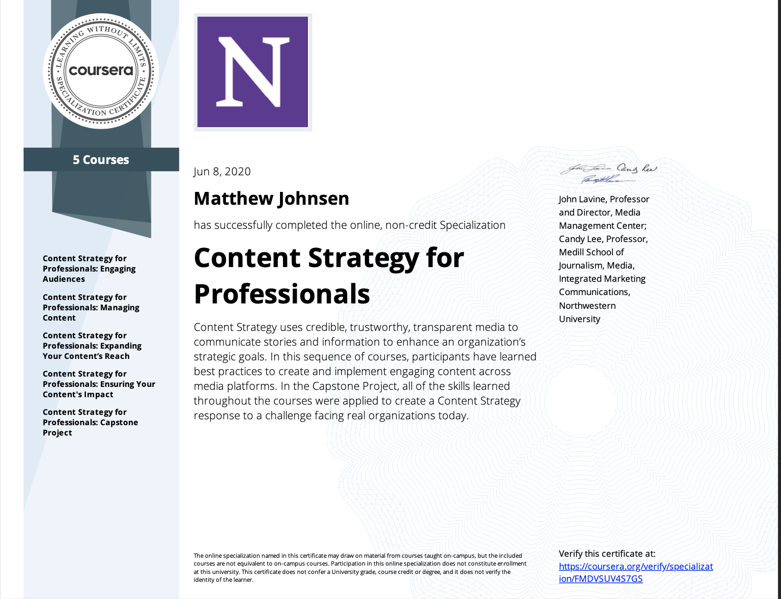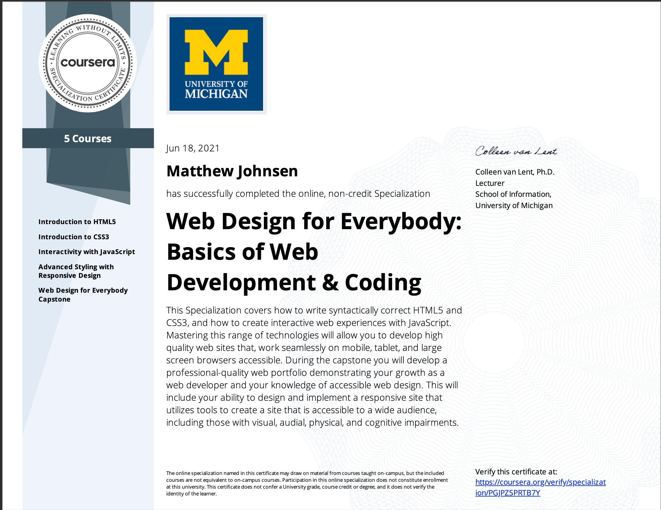 My certifications